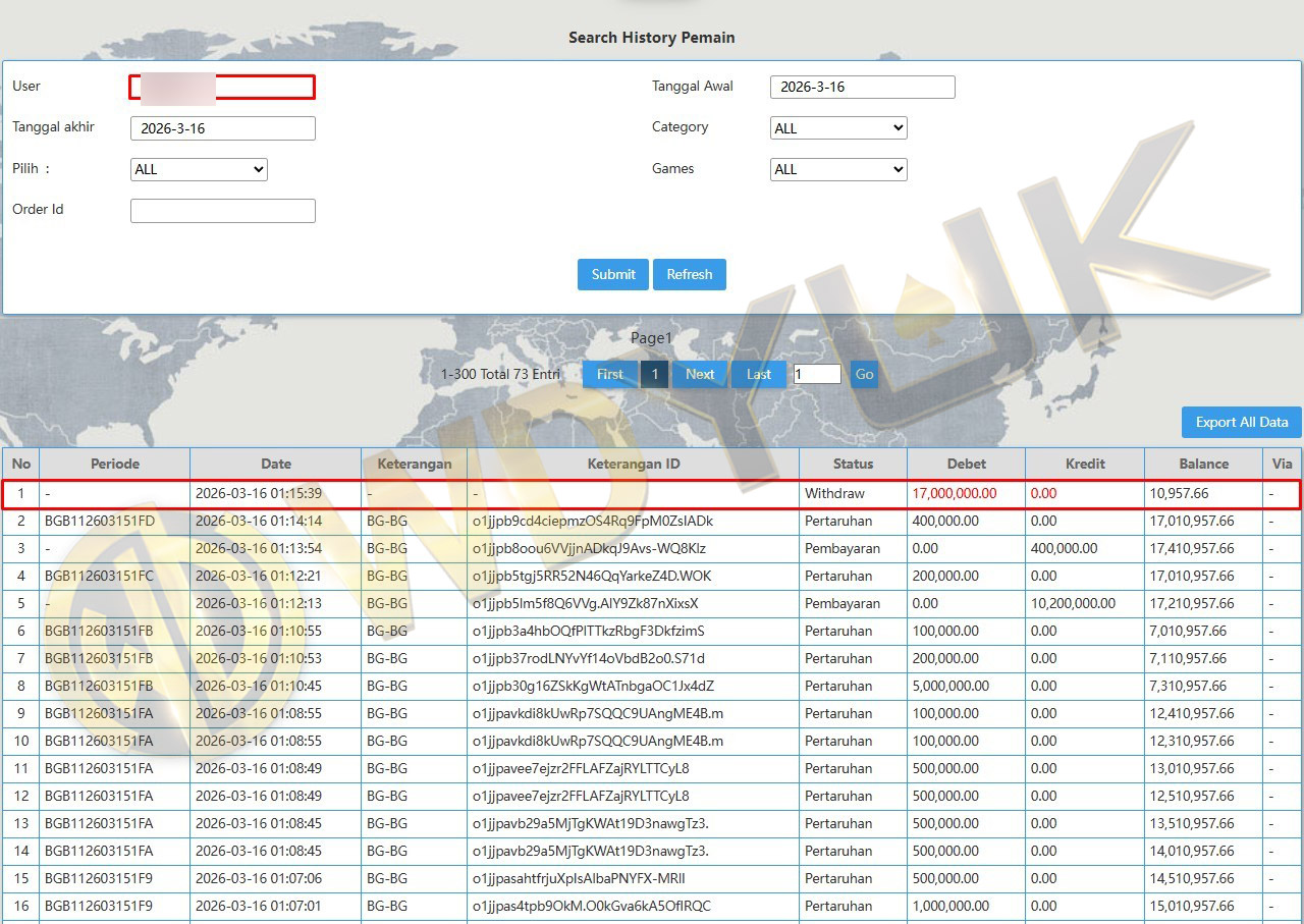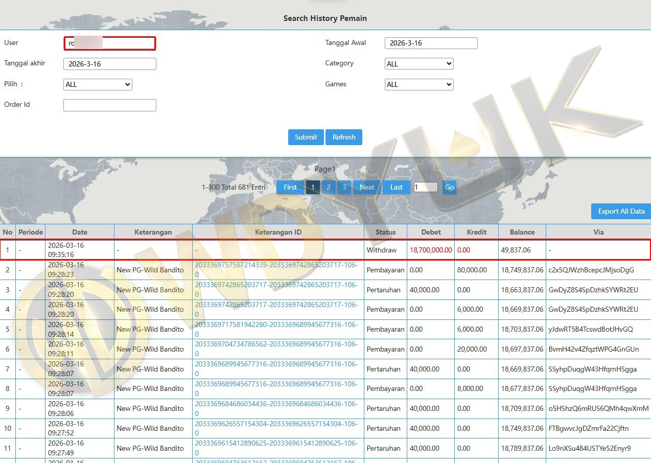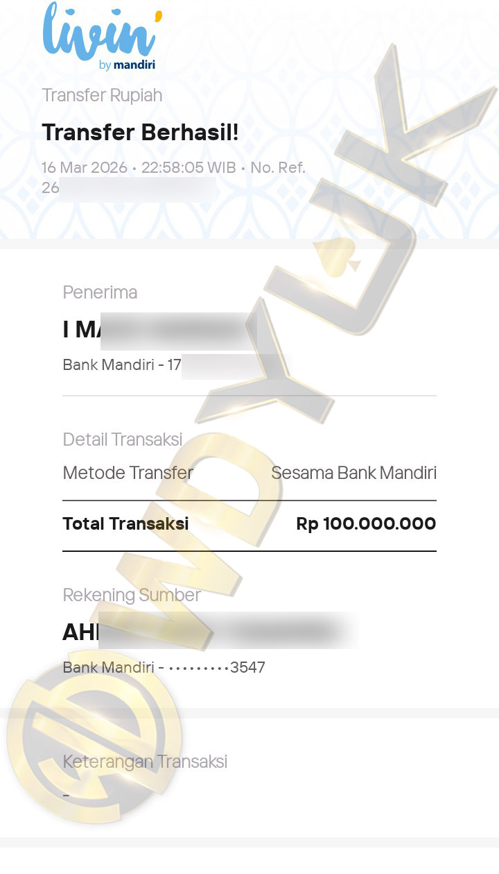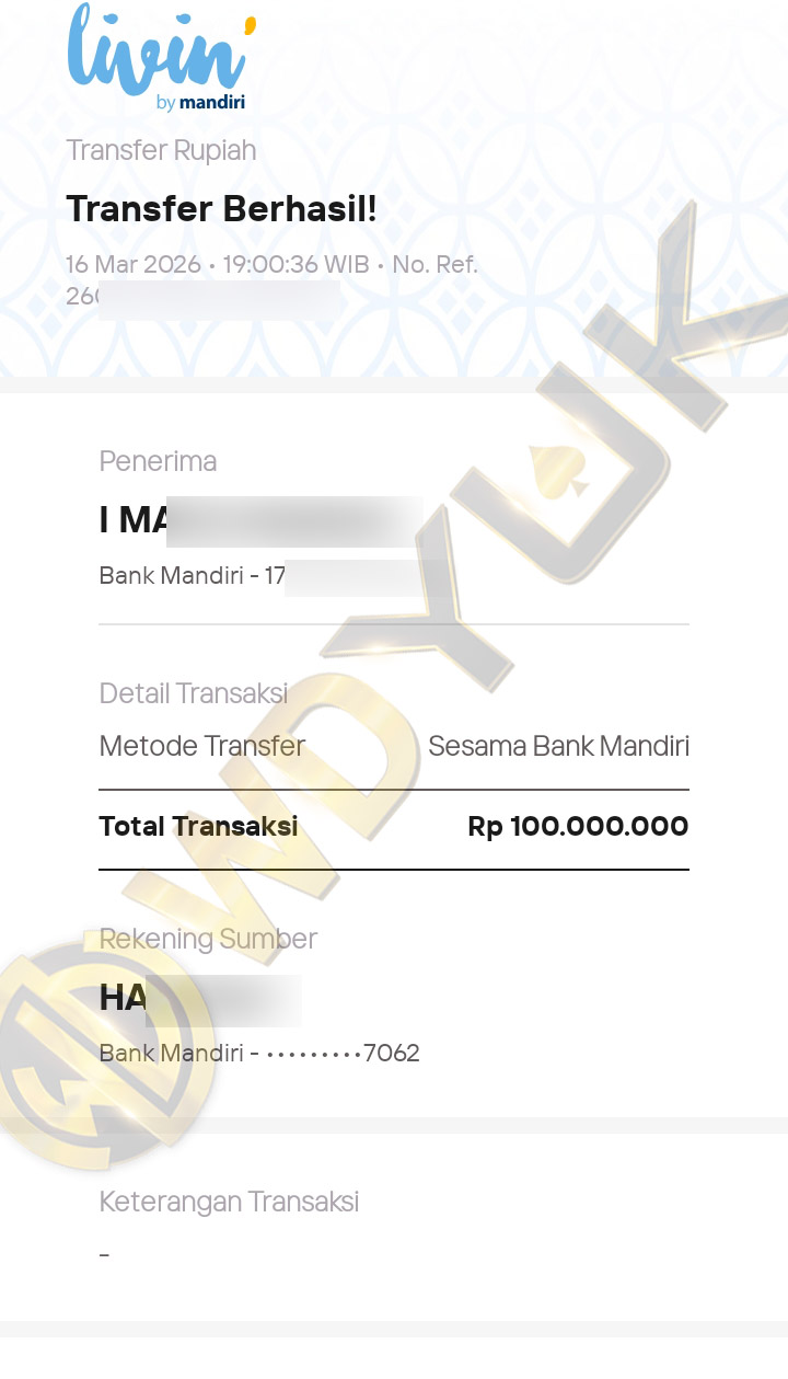 Selamat datang di situs resmi bukti transfer JP WDYUK. Dibawah ini telah selalu kami update setiap hasil bukti transfer dan game kemenangan dari member setia WDYUK. Kami ingin memberikan bukti nyata bahwa kami memang benar-benar bandar togel terpercaya Indonesia.