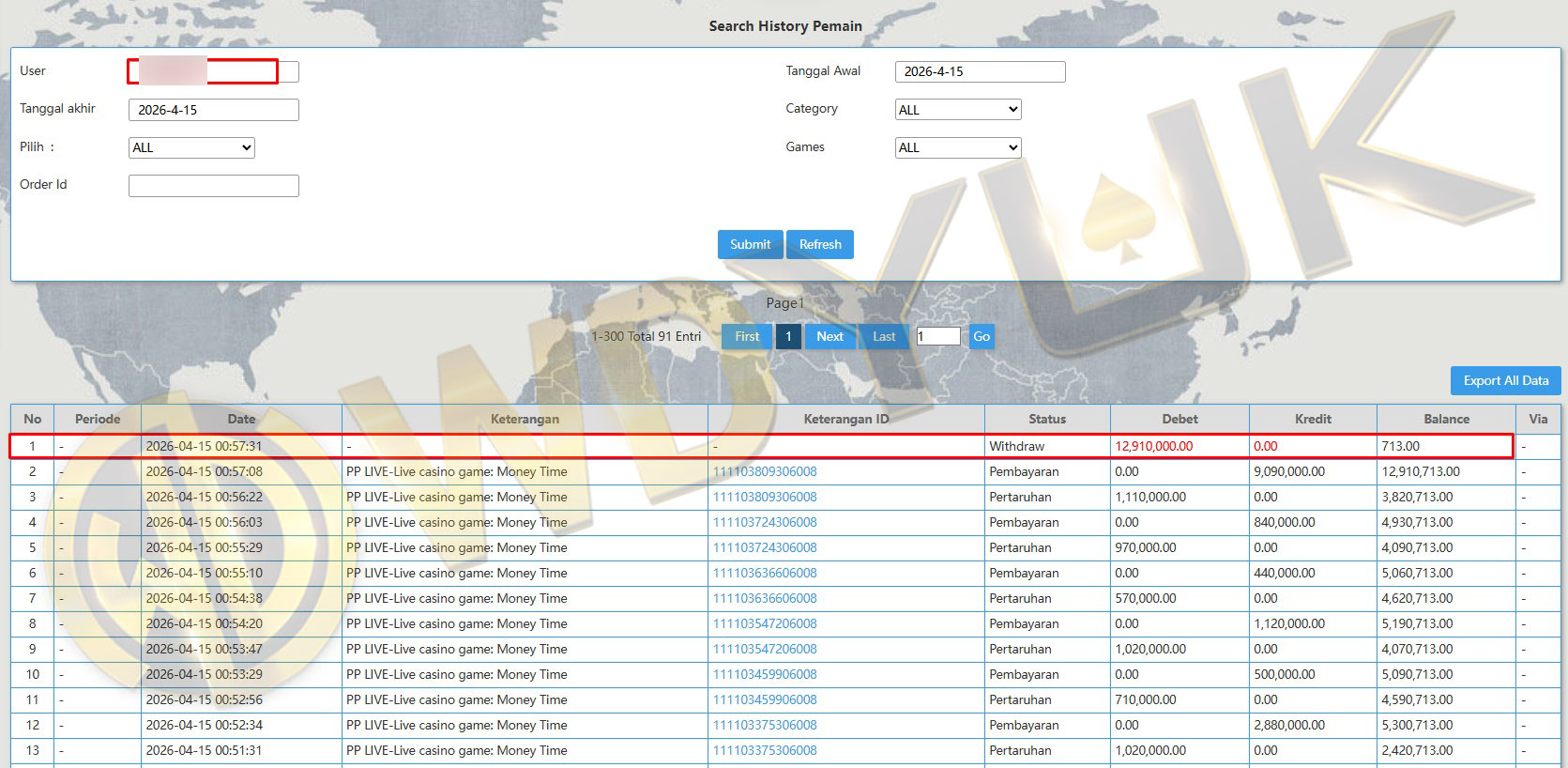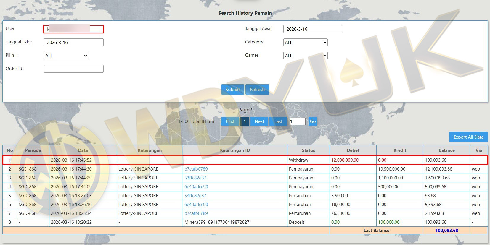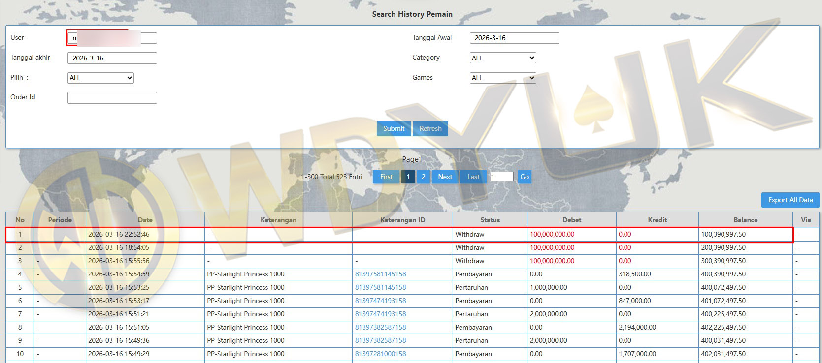 Selamat datang di situs resmi bukti transfer JP WDYUK. Dibawah ini telah selalu kami update setiap hasil bukti transfer dan game kemenangan dari member setia WDYUK. Kami ingin memberikan bukti nyata bahwa kami memang benar-benar bandar togel terpercaya Indonesia.