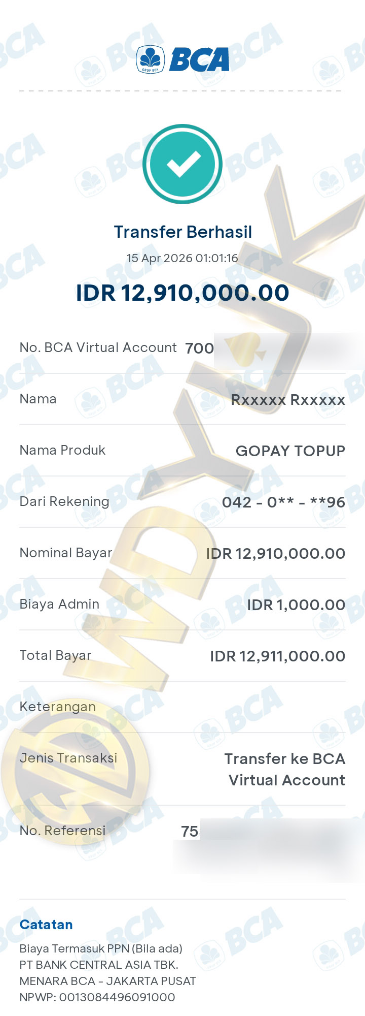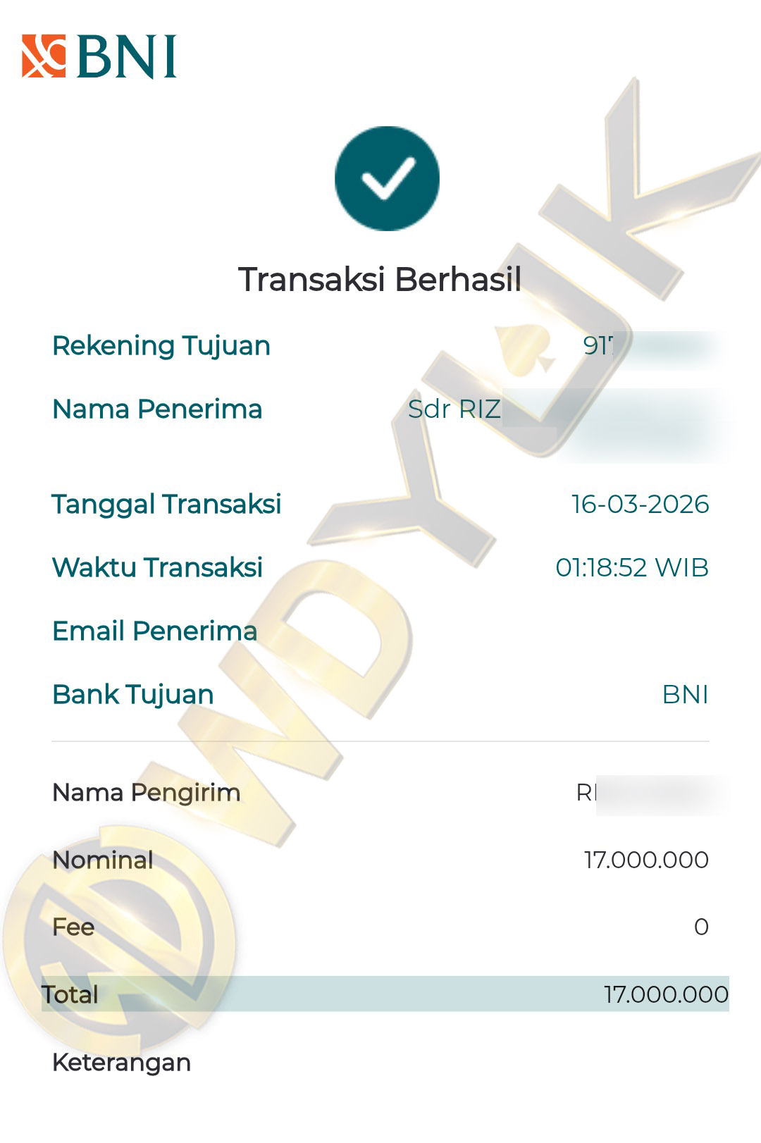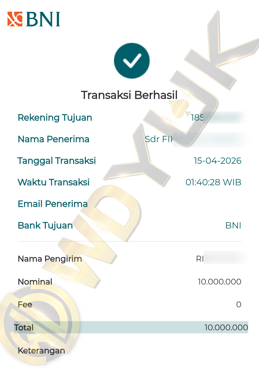 BUKTI TRANSFER JP MEMBER WDYUK