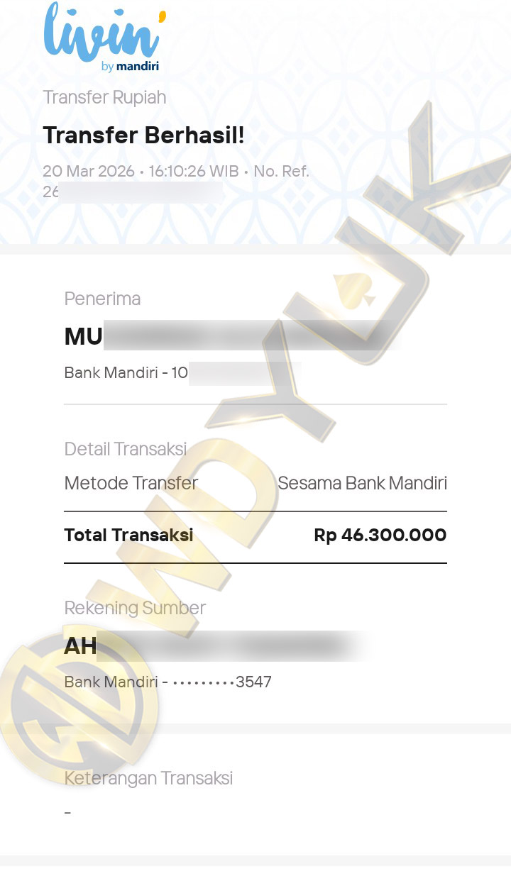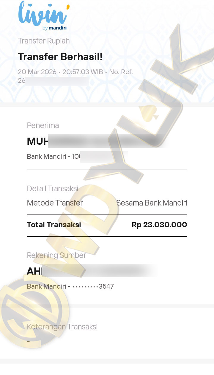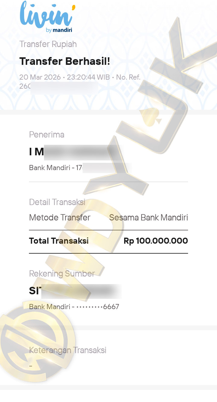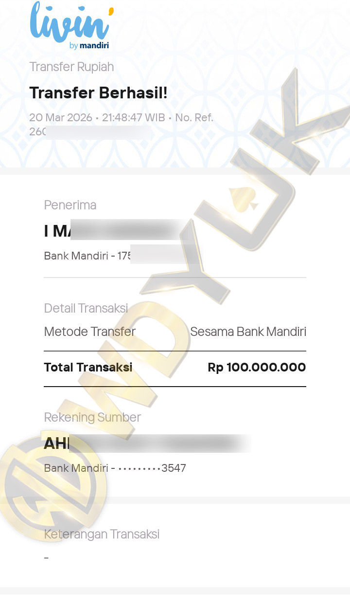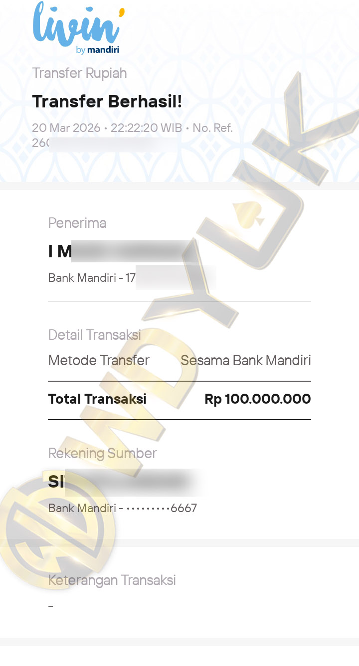Selamat datang di situs resmi bukti transfer JP WDYUK. Dibawah ini telah selalu kami update setiap hasil bukti transfer dan game kemenangan dari member setia WDYUK. Kami ingin memberikan bukti nyata bahwa kami memang benar-benar bandar togel terpercaya Indonesia.