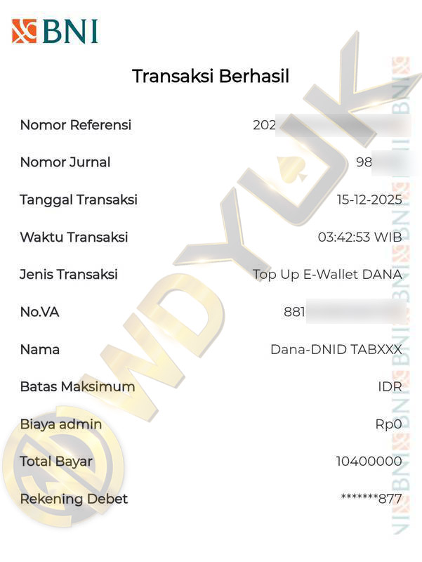 Selamat datang di situs resmi bukti transfer JP WDYUK. Dibawah ini telah selalu kami update setiap hasil bukti transfer dan game kemenangan dari member setia WDYUK. Kami ingin memberikan bukti nyata bahwa kami memang benar-benar bandar togel terpercaya Indonesia.
