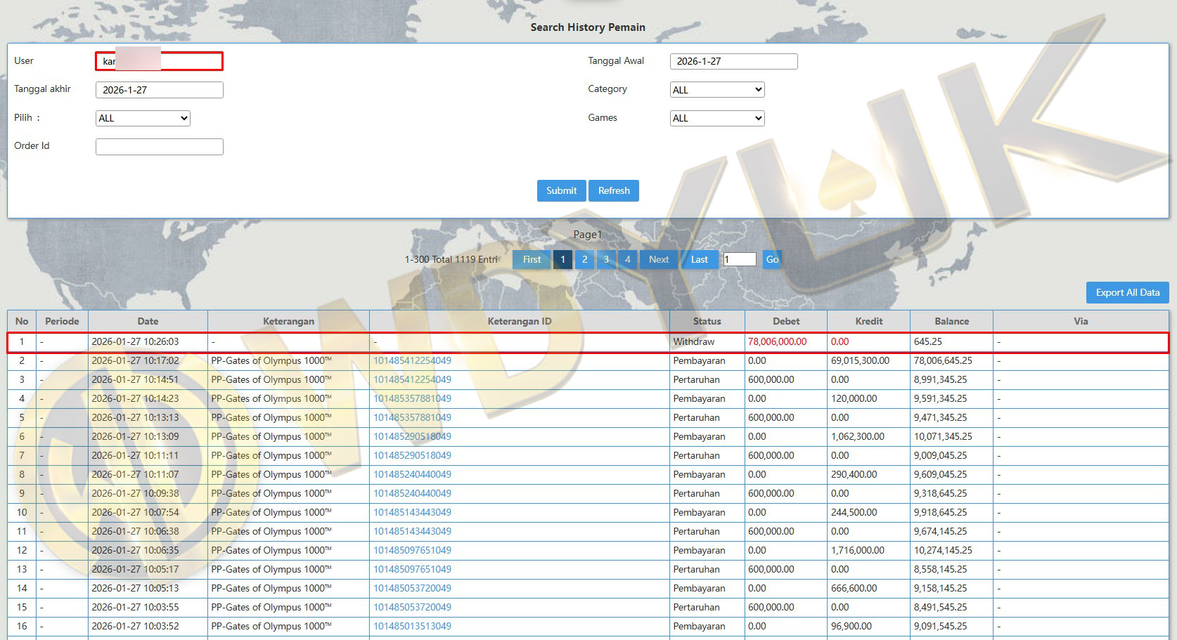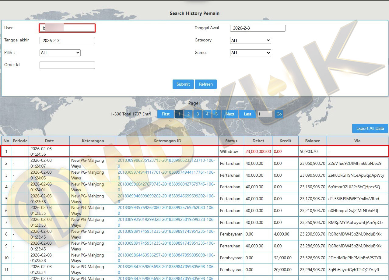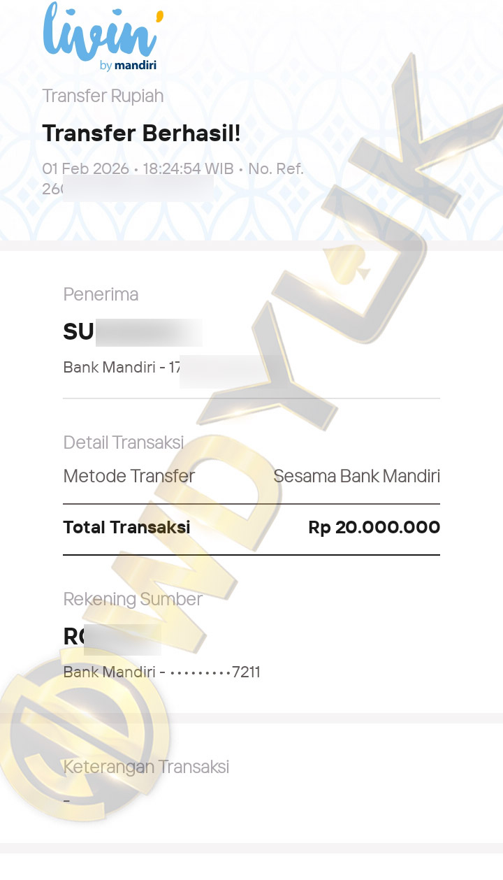 Selamat datang di situs resmi bukti transfer JP WDYUK. Dibawah ini telah selalu kami update setiap hasil bukti transfer dan game kemenangan dari member setia WDYUK. Kami ingin memberikan bukti nyata bahwa kami memang benar-benar bandar togel terpercaya Indonesia.