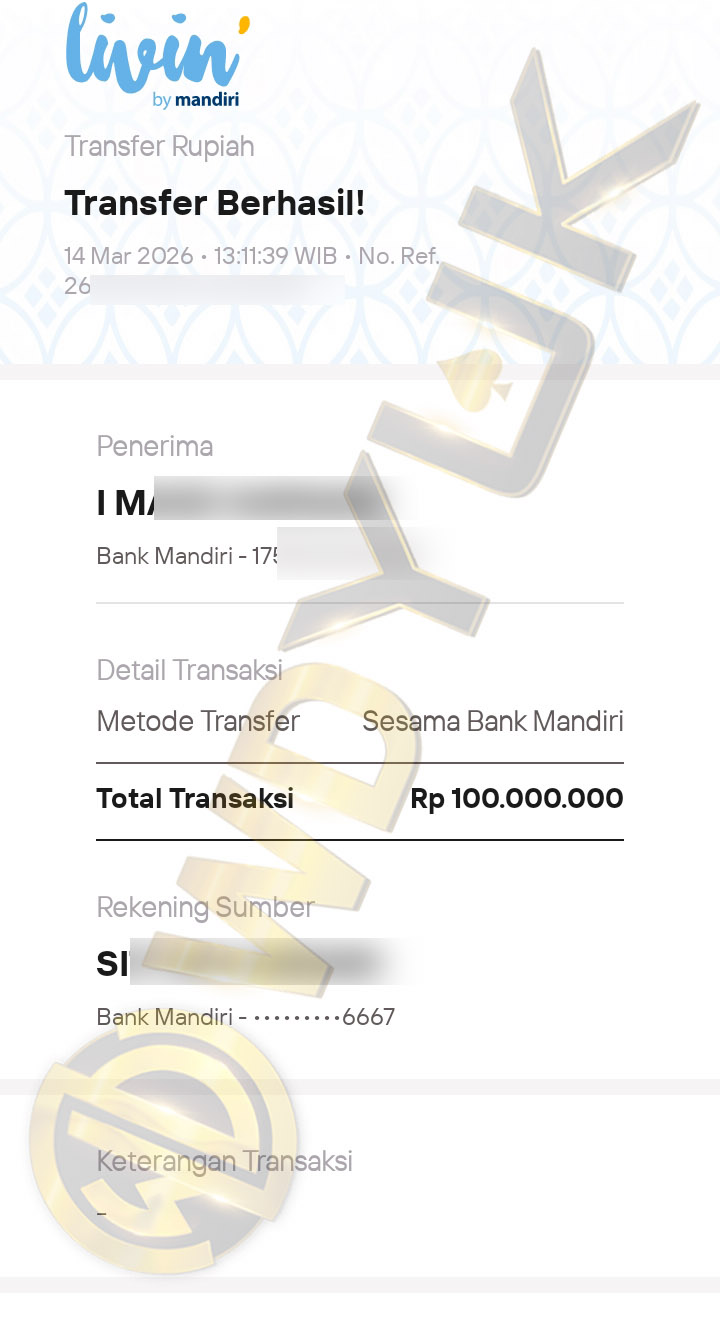 Selamat datang di situs resmi bukti transfer JP WDYUK. Dibawah ini telah selalu kami update setiap hasil bukti transfer dan game kemenangan dari member setia WDYUK. Kami ingin memberikan bukti nyata bahwa kami memang benar-benar bandar togel terpercaya Indonesia.
