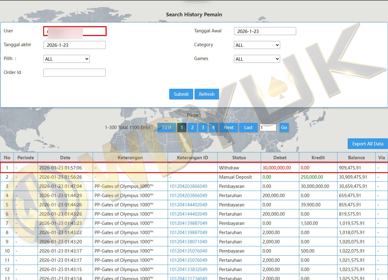 Selamat datang di situs resmi bukti transfer JP WDYUK. Dibawah ini telah selalu kami update setiap hasil bukti transfer dan game kemenangan dari member setia WDYUK. Kami ingin memberikan bukti nyata bahwa kami memang benar-benar bandar togel terpercaya Indonesia.
