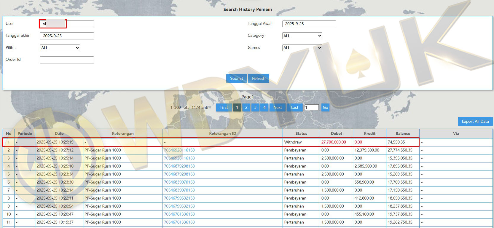 Selamat datang di situs resmi bukti transfer JP WDYUK. Dibawah ini telah selalu kami update setiap hasil bukti transfer dan game kemenangan dari member setia WDYUK. Kami ingin memberikan bukti nyata bahwa kami memang benar-benar bandar togel terpercaya Indonesia.
