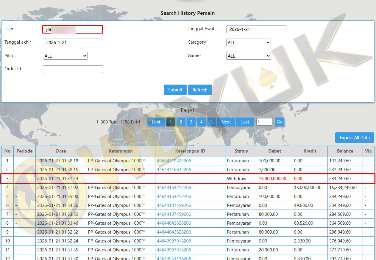 Selamat datang di situs resmi bukti transfer JP WDYUK. Dibawah ini telah selalu kami update setiap hasil bukti transfer dan game kemenangan dari member setia WDYUK. Kami ingin memberikan bukti nyata bahwa kami memang benar-benar bandar togel terpercaya Indonesia.