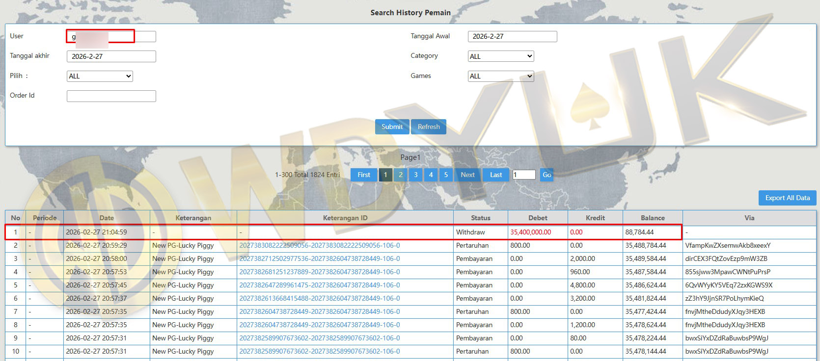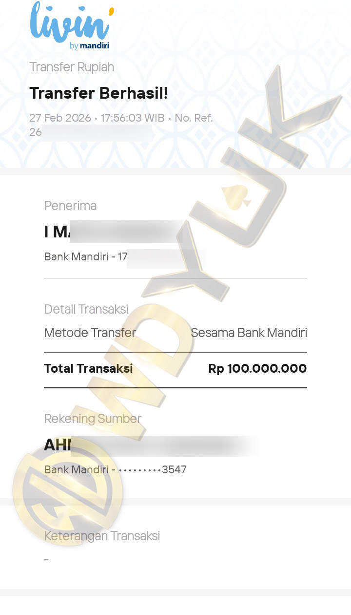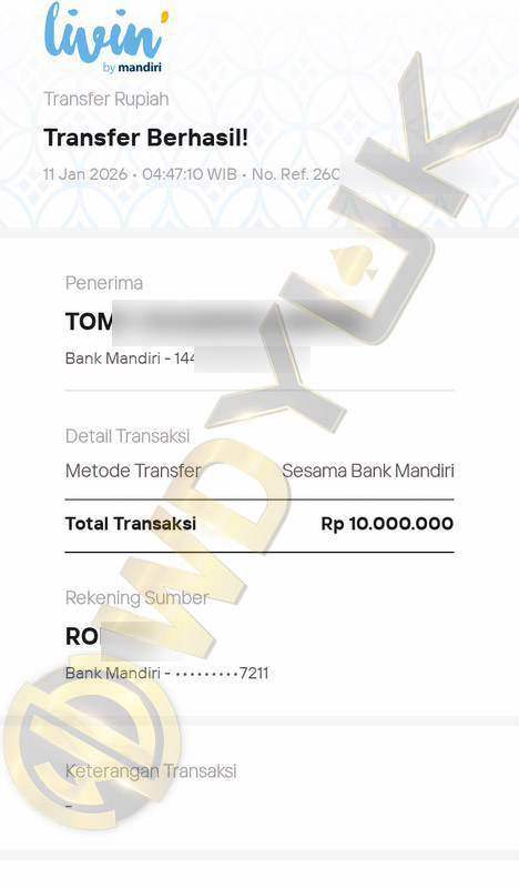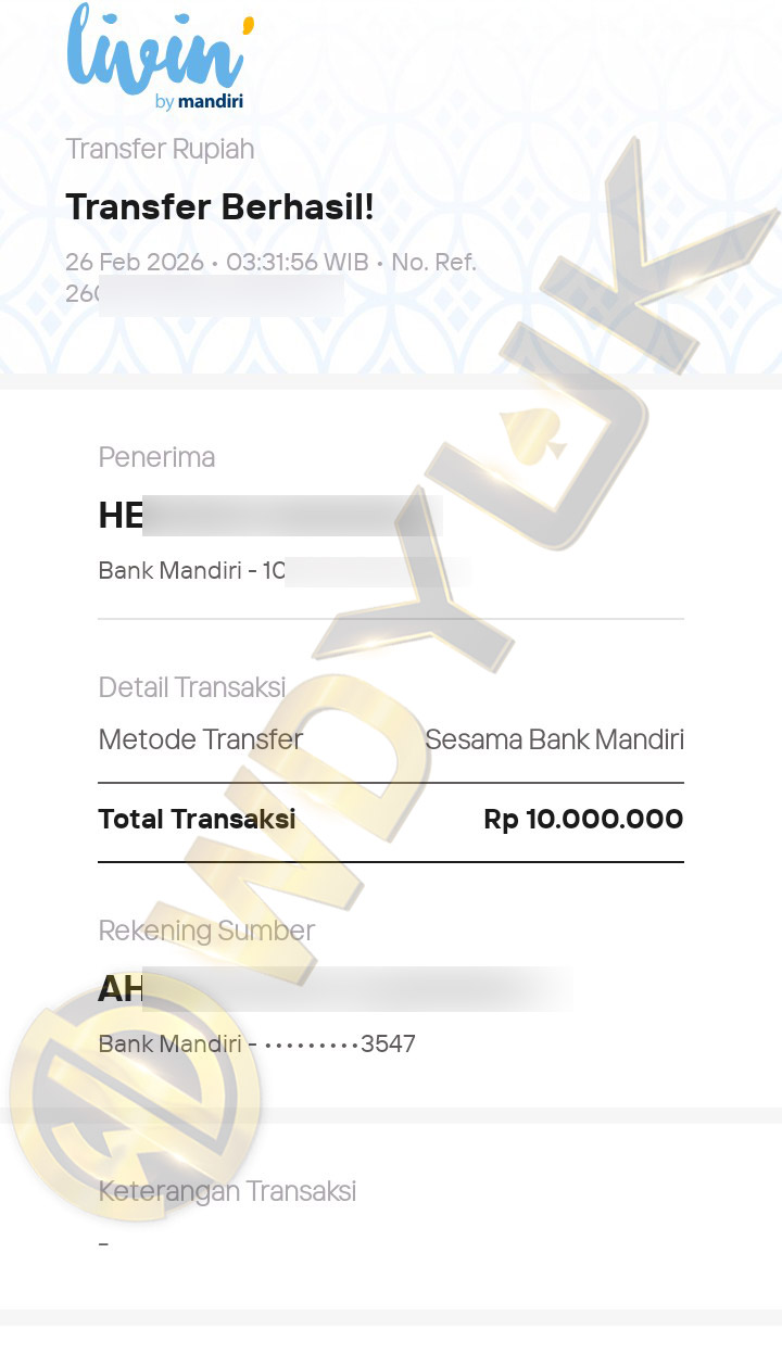 Selamat datang di situs resmi bukti transfer JP WDYUK. Dibawah ini telah selalu kami update setiap hasil bukti transfer dan game kemenangan dari member setia WDYUK. Kami ingin memberikan bukti nyata bahwa kami memang benar-benar bandar togel terpercaya Indonesia.
